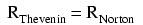 - Thevenin and Norton resistances are equal.